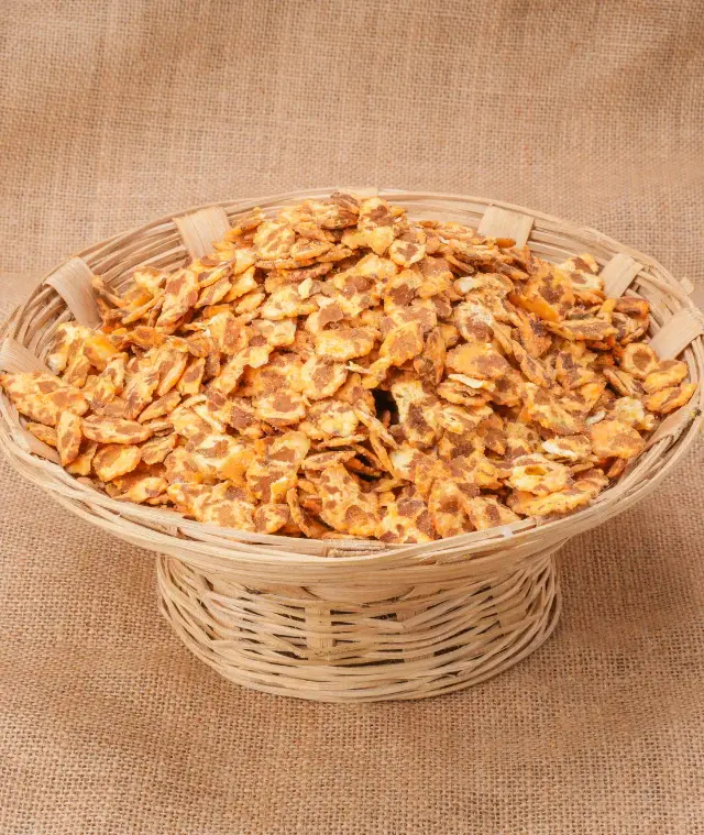 • Texture & Taste: It has a signature thin, disc-like shape with a very crispy and brittle texture. The flavor is typically savory, spicy, and tangy.
